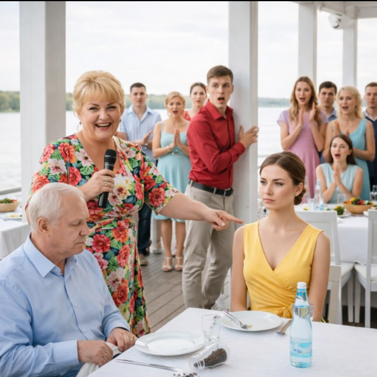 შემდეგ ილიას შეხედა. მისი ხმა ცივი, ემოციებისგან დაცლილი იყო.— წაიყვანე შენი დედა. და არასოდეს შეუსწრაფდე ჩემს სახლში. თქვენი ოჯახი საზიზღარია.მან ჩამოიყვანა სცენიდან, მივიდა ჩემთან და ჩუმად თქვა:— მაპატიე, სოფია. მე ძნელად ვხედავდი. მიატოვე ის.