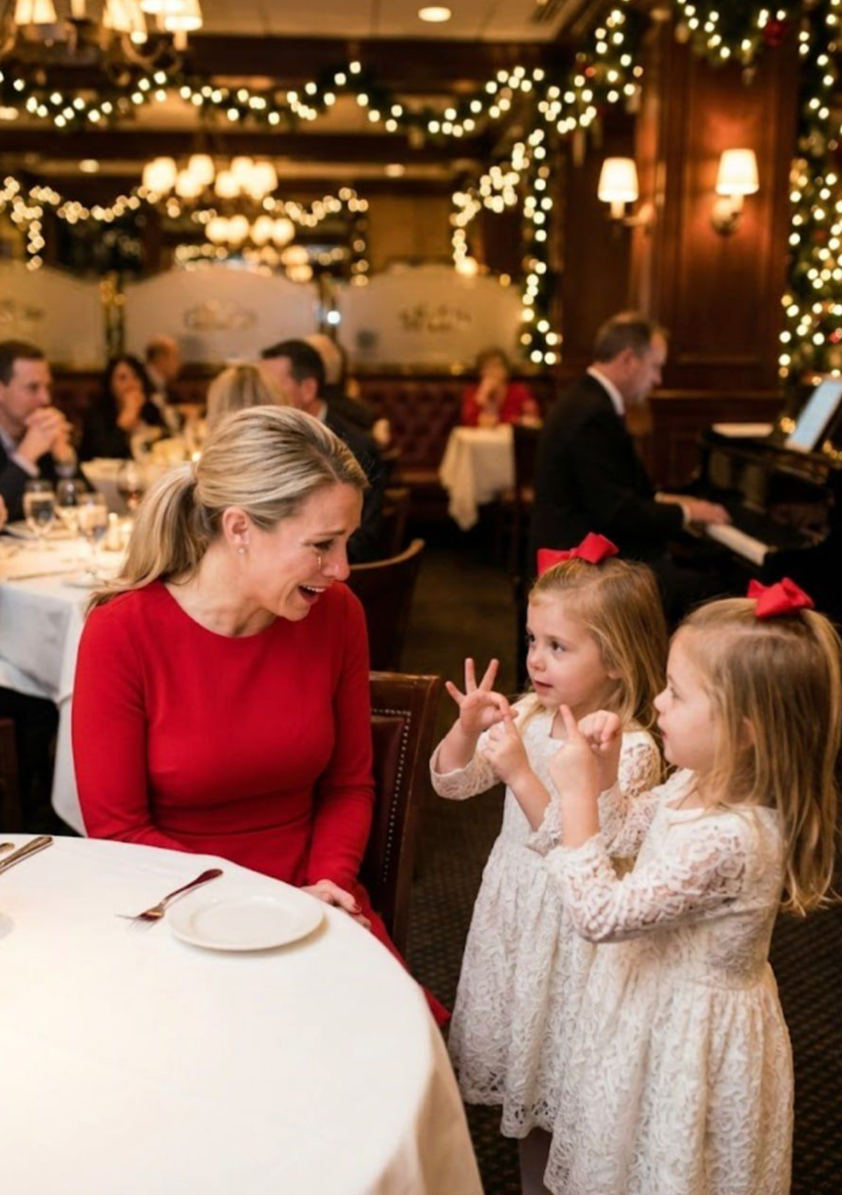 „ვისაც ასეთი დეტალი ხელს უშლის, შენ არ იმსახურებს.“„შენ მე არც კი გიცნობ,“ – უპასუხა ლორენმა, მაგრამ ტუჩები გაუღიმა. ჩუმი გაგება ჩამოწვა, თბილი და მშვიდი.ტვინლინები, უშიშრად, მოითხოვდნენ საშობაო სიმღერის შესრულებას ხელის ენით. სინათლის მავთულების ქვეშ მათი „ჩუმი ღამე“ სხვებსაც უღიმოდა რესტორანში.