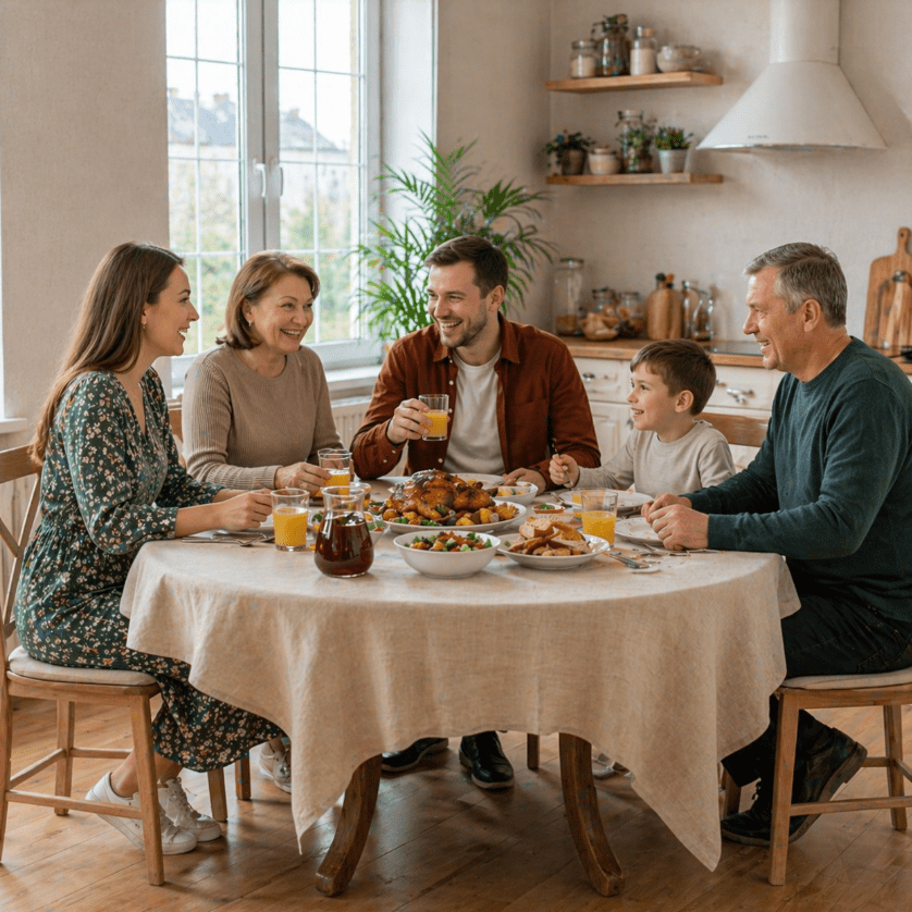 მაგიდასთან ყველაფერი იდეალურად გამოიყურებოდა. ოქროსფრად გამომცხვარი იხვი, ბრწყინვალე ჭიქები, მშვიდი საუბრები. მაგრამ შიგნით რაღაც არ მაძლევდა სიმშვიდეს. ველოდი ერთ სიტყვას, ერთ მზერას მაინც ჩემი ქმრისგან. არაფერი.