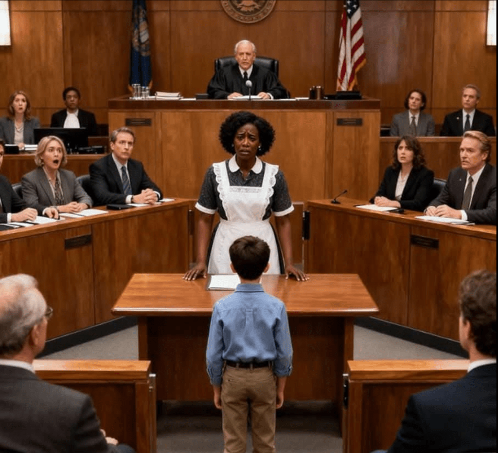 მდიდარი ბიზნესმენის მოსამსახურემ სასამართლოს დარბაზში მარტომ შევიდა — ადვოკატის გარეშე, სრულიად დაუცველი. მაგრამ ყველაფერი იმ წამს შეიცვალა, როცა მისი შვილი გამოჩნდა და სიმართლე გაამჟღავნა, სიმართლე, რომელმაც მთელი საქმე თავდაყირა დააყენა. დარბაზი სუნთქვაშეკავებული უსმენდა იმ სათქმელს, რომელმაც ყველა შეხედულება შეცვალა.